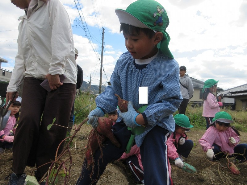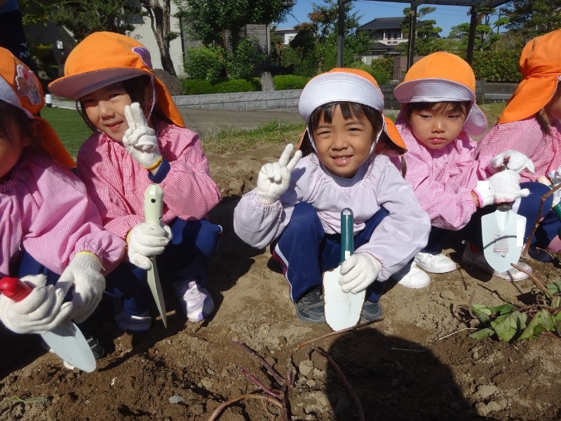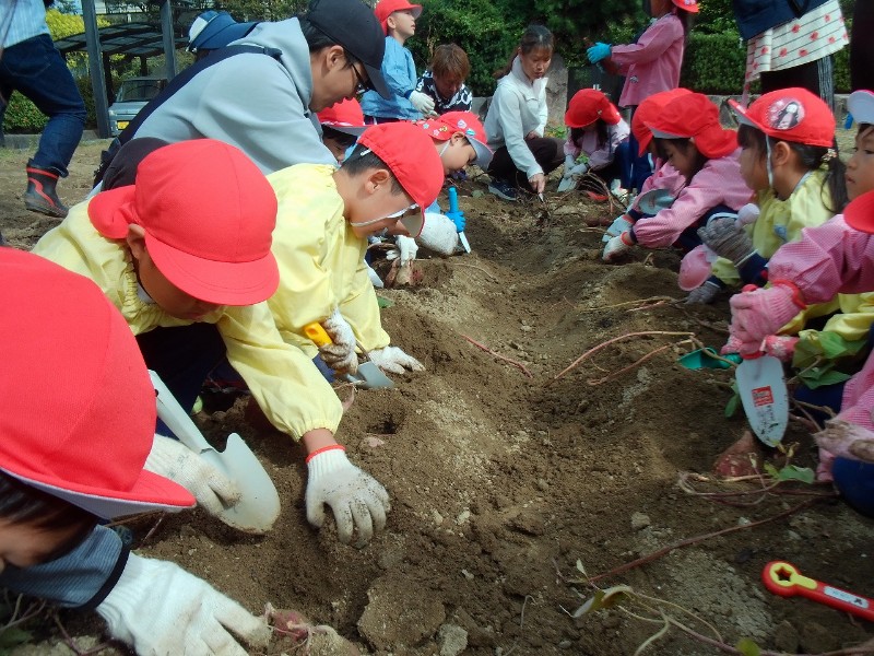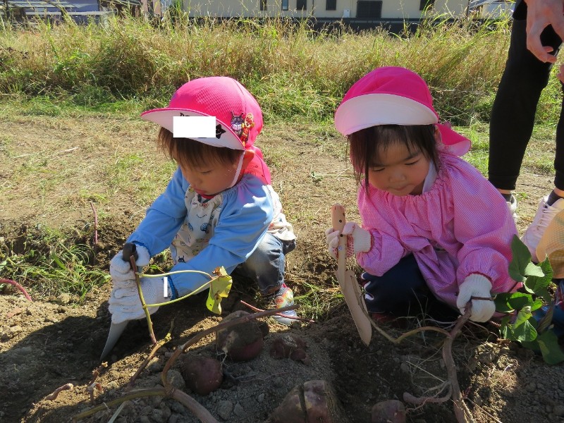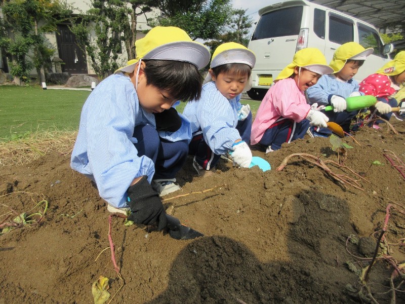 24日(金)に満3歳児、27日(月)に年少組、28日(火)に年長組、29日(水)に年中組は芋掘り体験を行いました。