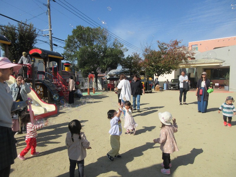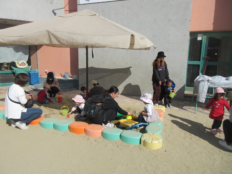 とってもいいお天気の中、みんなで楽しくお外遊びをしました♪お砂場や滑り台など、お友だちやお家の人と一緒に楽しい時間を過ごしましたね。朝の歌やごあいさつ、アンパンマン体操もみなさんとっても上手でしたよ♡