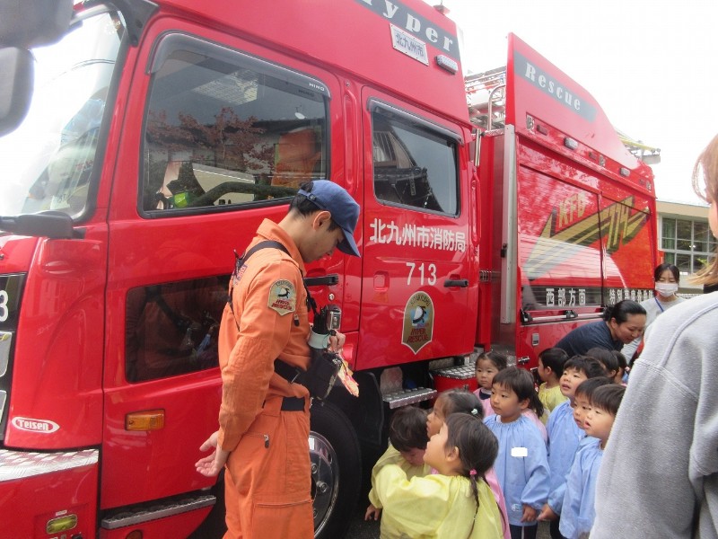 訓練後は車両展示があり、かっこいい消防車が見れて大興奮の子どもたちでした。