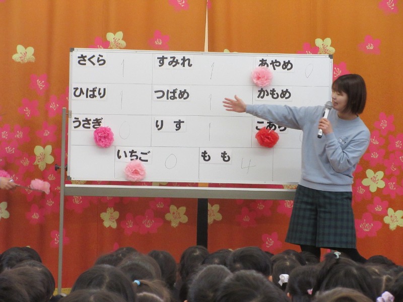 素敵な制服姿で元気に「あけましておめでとうございます」の新年のあいさつが出来ました。干支のお話を聞き、七草のわらべうたも教えてもらい新たな年のスタートとなりました。今年は午年!元気いっぱい園庭を走ったり、下上津役幼稚園のシンボル、ポニーの様にいつもお互いニコニコと笑顔で思い合えるような素敵な1年になりますように!!