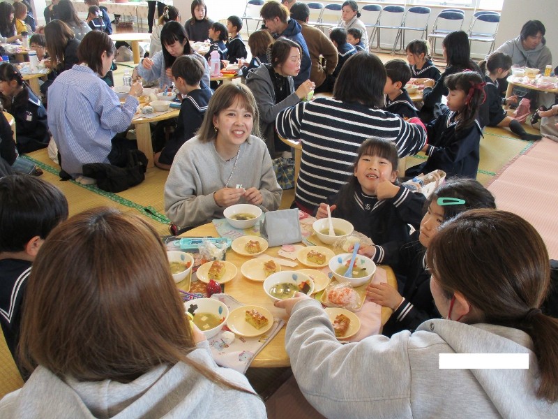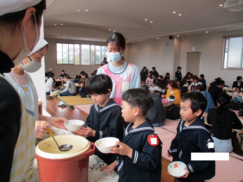 2月26日(木)、3月5日(木)に年長組さんはお家の方を招待し、味噌汁会を行いました。いつもお世話をしてくれるお家の人に感謝の気持ちを込めてハンドベルで「アメイジンググレイス」を演奏しました。シ~ンと静まった講堂に響くきれいなベルの音色にうっとり♪その後、1学期に子どもたちが作ったお味噌で作った味噌汁とお家の方が持って来てくれた愛情たっぷりのおにぎりを一緒においしくいただきました。嬉しそうにお盆に乗せてアツアツのお味噌汁を運ぶ姿がとても可愛く、お家の方も思わずニコニコと笑顔がほころんでいましたよ(*^-^*)サプライズで子どもたちからのお手紙には感激し、思わずウルウル…となる場面も。